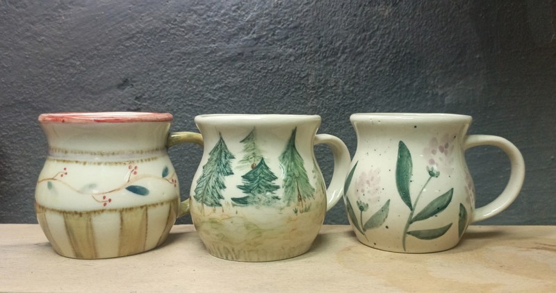 В нашей мастерской все изделия ручной работы — одинаковых нет. Вы рассмотрите их и выберете чашку или тарелку, которую будете расписывать в подглазурной технике