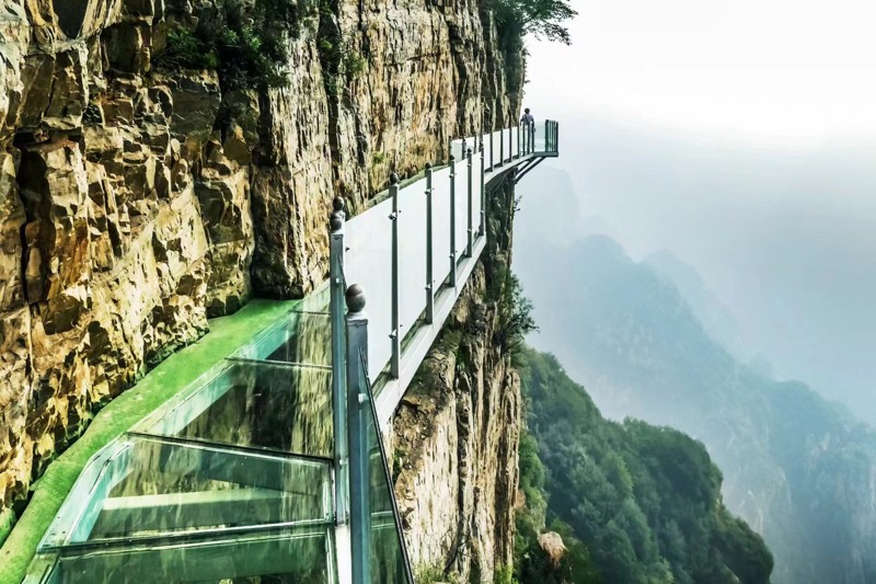 Что вас ожидает Стеклянная дорога. Она построена в горах Тяньюньшань среди облаков Мост, который пересекает две горы. Его длина более 200 метров, а высота около 1000 метров над уровнем моря. Мост сделан...