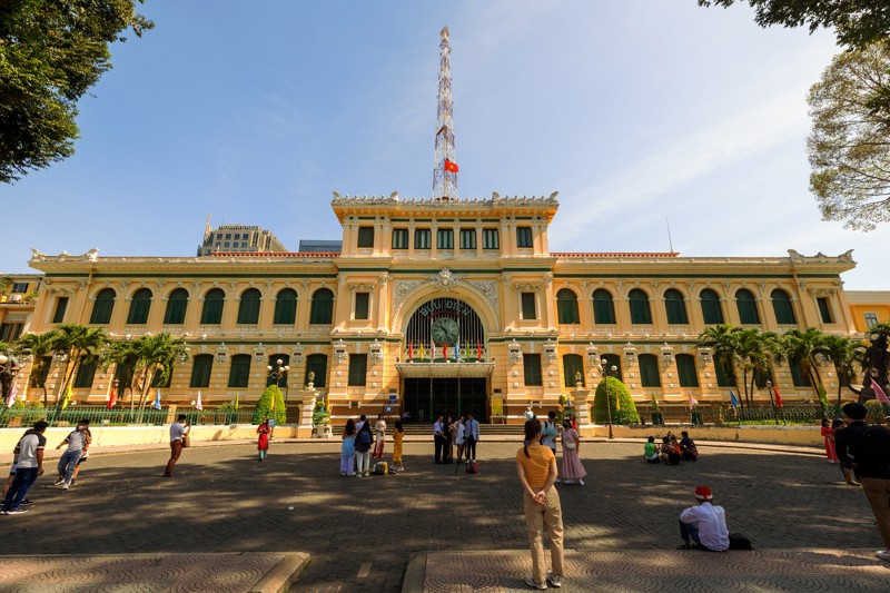 Прогуляемся по центральной улице Нгуен Хюэ и остановимся для фото у памятника Хо Ши Мину перед зданием...