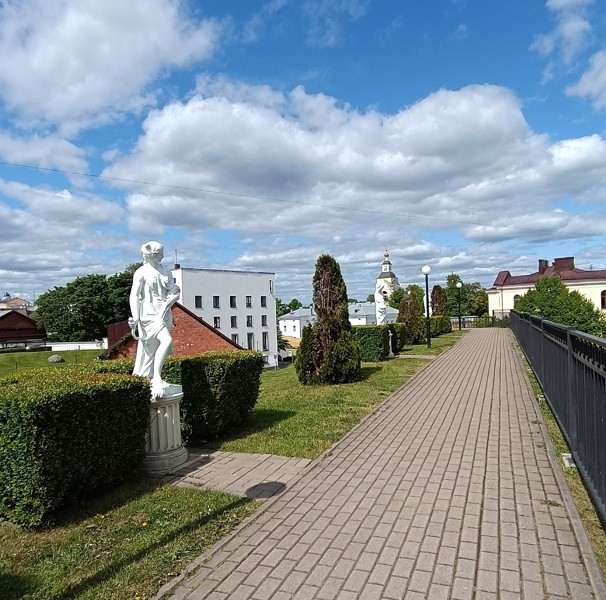 Поднимемся на смотровую площадку к Петру I и к зданию городского Архива, построенного на фундаменте православной церкви